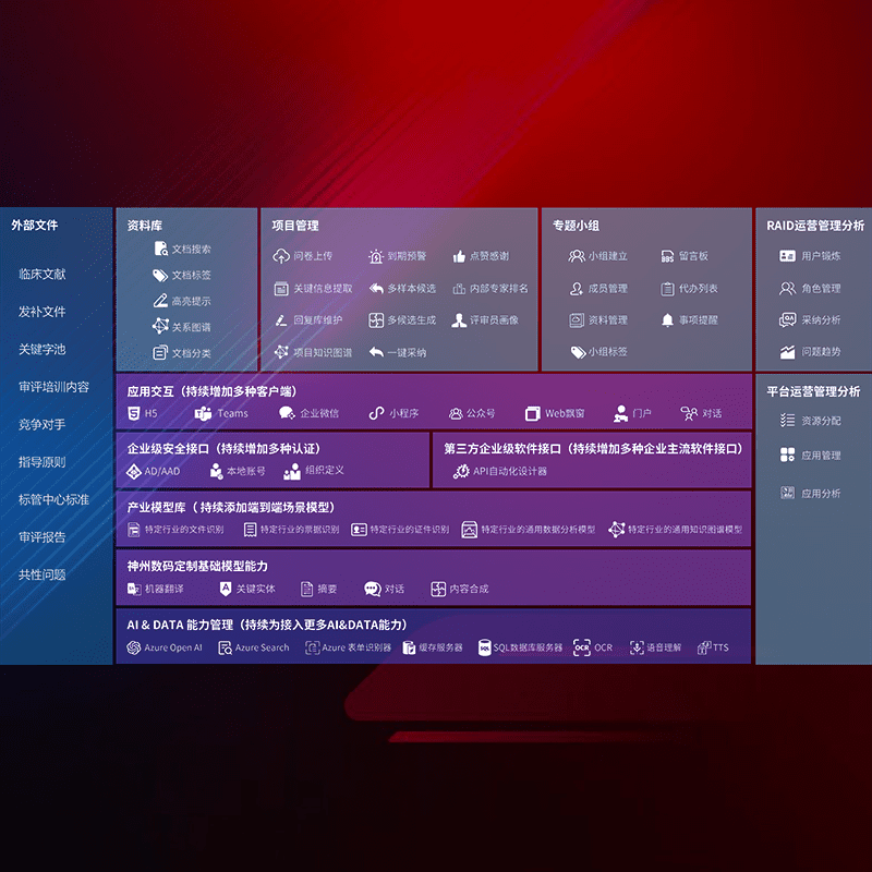 医疗器械产品上市前,,,,要熟悉严格与繁复评审标准,,,,整理分析监管机构指导文件中的海量信息。。。。企业急需一个智能化解决方案,,提升知识管理效率,,,,提高评审通过率,,以提升其市场竞争力。。